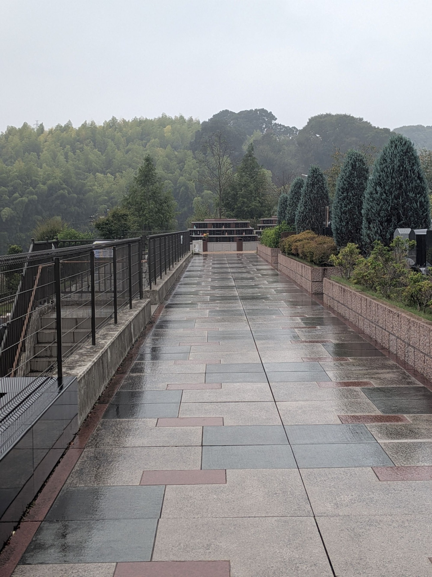 秋雨 「暑かった夏が過ぎ秋のおとづれを感じさせる雨」 秋雨(あきさめ)は、秋の季語としても親しまれる言葉です。しとしとと静かに降る雨は、夏の喧騒を洗い流し、季節の移ろいをしっとりと告げてくれます。 秋雨に包まれた霊園は、静けさとやすらぎの中にあります。 雨粒が語るのは、過ぎし日々への想いと、これからの季節への祈り。 どうぞ、心穏やかなひとときをお過ごしください。