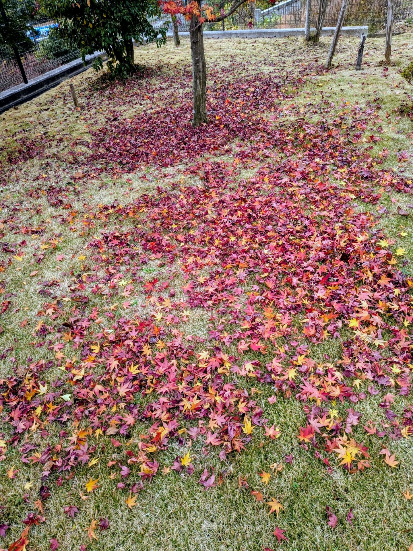 「苑内の小径には紅葉が降り積もり、まるで赤や黄の絨毯を敷いたような景色が広がっています。歩くたびに季節の彩りを感じられるます。」