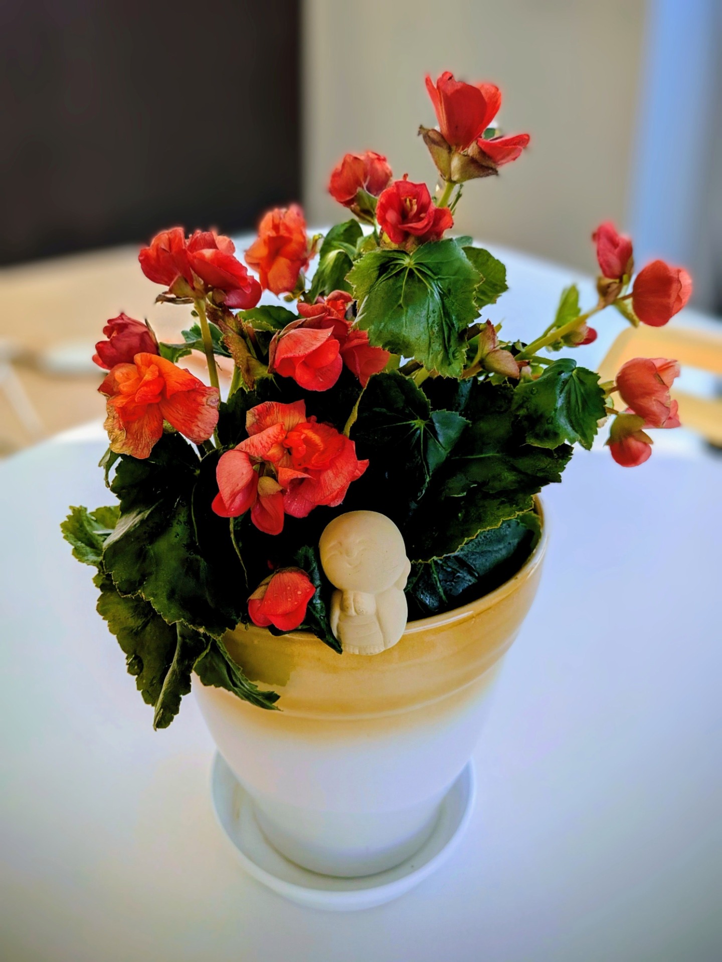 冬の乾いた風とベコニアのやさしい色」 「冬の乾きに彩りを添えるベコニアの花」 乾燥の厳しい日々が続き、風が冷たく肌を刺すような季節の中でも、ベコニアの鮮やかな色彩が静かに咲き誇り、冬の景色にそっと彩りを添えてくれるます 皆さま、乾燥の季節を乗り切りましょう。雨の少ない日が続き、空気がカラカラに乾いてしまうこの時期は、人にとっても植物にとっても厳しい季節です。それでも苑内では、ベコニアが小さな体で懸命に花を咲かせ、冬を元気に乗り越えようとする姿を見せてくれています。そんな健気な花々に励まされながら、私たちもこの乾燥の季節を穏やかに過ごしていけたらと思います。 皆さまにとって、穏やかで温かい一日となりますように。