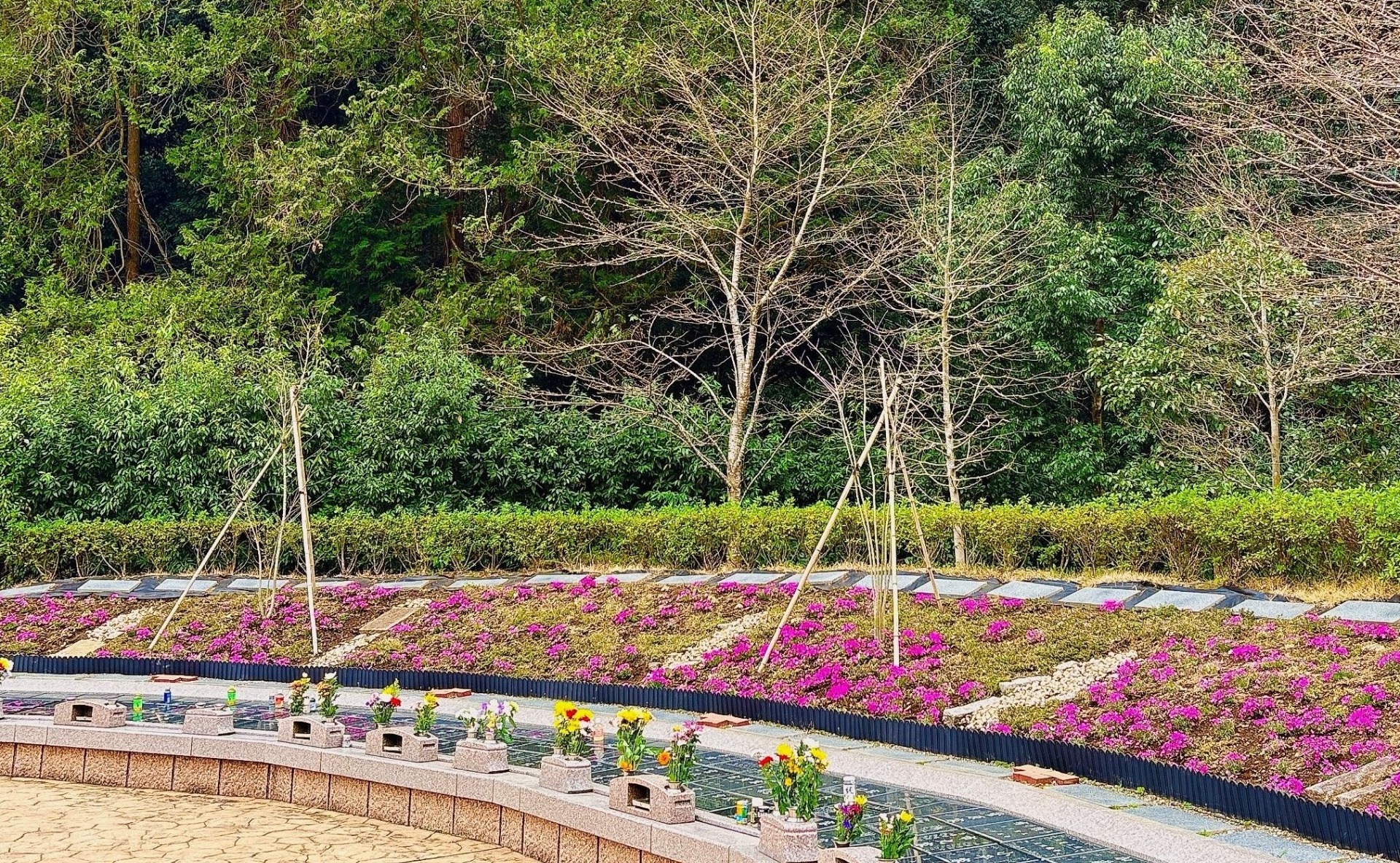 春のやわらかな陽ざしに包まれ、芝桜墓苑では綺麗なピンク色が美しく咲き広がっています。